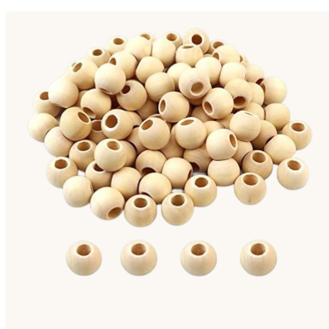 16mm Natural Wooden Beads – Pack of 100 Pieces